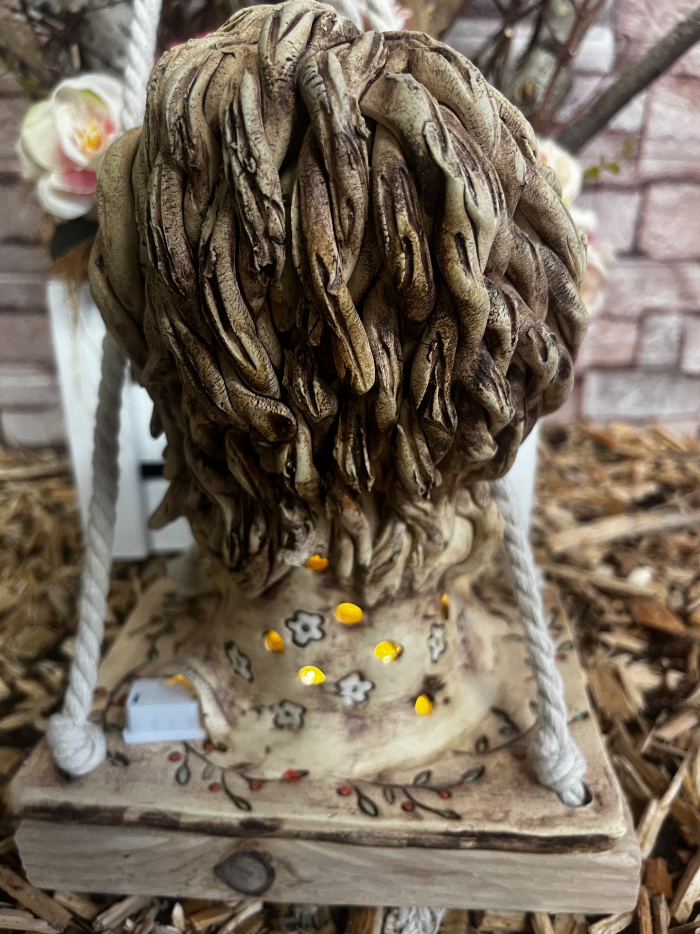 Holčička na houpačce ,kterou lze i rozsvítit .